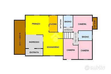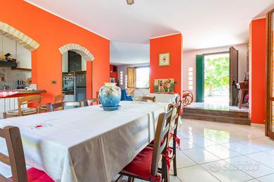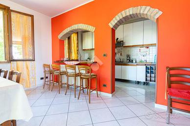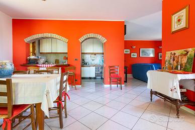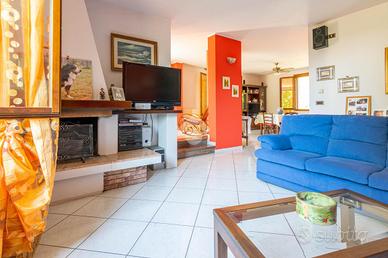 L'ingresso ci conduce sull'ampio soggiorno dotato di un caldo e ospitale caminetto con open space con la sala da pranzo da cui si può vedere la cucina; nella zona notte sono presenti 3 camere da letto e 2 bagni.