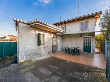 A pochi chilometri dal centro del paese, proponiamo soluzione indipendente libera su 4 lati, disposta su due livelli. Il piano terra è composto da un locale in igresso che funge da soggiorno, un zona giorno open space con angolo cottura, un retro cucina ed un bagno finestrato con vasca e doccia. Tramite scala interna, si accede al primo piano composto da una camera da letto padronale con balcone e bagno, un ulteriore camera da letto matrimoniale finestrata ed una terza camera da letto mansardata con bagno finestrato con doccia. Completa la soluzione un box singolo, una tavernetta con servizi, ed una corte esclusiva.