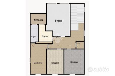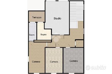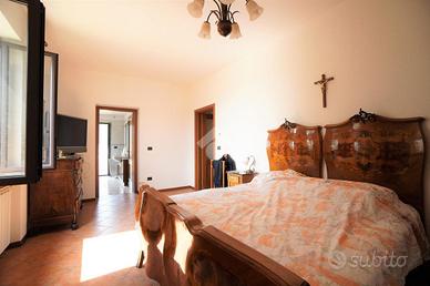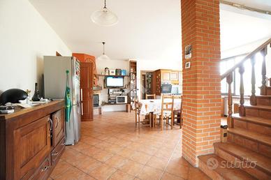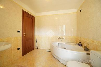 Al piano terra rialzato troviamo un ampio ingresso con cucina abitabile, un salone con una grande finestra che che affaccia sul cortile sul retro, un ulteriore sala da pranzo, una camera da letto ed un bagno con lavanderia. Al primo piano un disimpegno porta a quattro camere da letto, di cui tre matrimoniali e una singola e due bagni, di cui uno dotato di vasca idromassaggio.