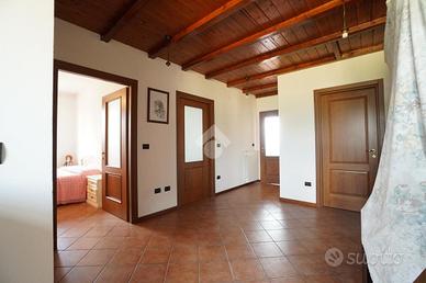 Completano le pertinenze un terrazzo al piano superiore, un ampio cortile, un piccolo terrazzo all'ingresso, una cantina ed un box auto singolo.