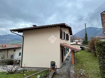 Proponiamo in vendita a Vigolo una villa singola di ampia metratura, caratterizzata da indipendenza e versatilità degli spazi, ideale anche per due nuclei familiari grazie alla suddivisione in due unità abitative distinte ma collegate da vano scala comune. Al piano terra si sviluppa il primo appartamento, composto da una luminosa zona giorno con soggiorno e cucina open space, ben distribuita e funzionale. Un comodo disimpegno conduce alla zona notte, dove troviamo una camera matrimoniale, una cameretta e un bagno finestrato dotato di box doccia. Le camere godono di accesso diretto al balcone, mentre dalla zona living si accede a un'ampia terrazza vivibile, completa di pratico ripostiglio e area barbecue, perfettamente attrezzata per pranzi e momenti conviviali all'aperto, in continuità con il giardino. Attraverso il vano scala si raggiunge il secondo appartamento, posto al piano superiore, composto da una cucina con accesso al balcone e da un ampio soggiorno separato di generosa metratura, facilmente modulabile per ricavare un'ulteriore camera da letto. La zona notte include una camera matrimoniale, mentre sia il soggiorno sia la camera dispongono di uscita su un ulteriore balcone. Completa il piano un bagno finestrato con vasca. Al piano seminterrato si colloca la zona accessoria, che comprende una taverna, una lavanderia, una cantina e il locale tecnico, oltre a un'autorimessa singola dotata di basculante elettrica. È inoltre possibile parcheggiare una seconda autovettura nello spazio antistante il box. L'immobile viene venduto comprensivo di arredi; tutti i serramenti esterni sono stati completamente sostituiti nel 2017, migliorando l'efficienza energetica e il comfort abitativo dell'immobile. La proprietà è valorizzata da un ampio giardino privato che circonda l'abitazione su tre lati, garantendo privacy e vivibilità degli spazi esterni. Soluzione ideale per chi è alla ricerca di indipendenza, metrature generose e possibilità di personalizzazione.