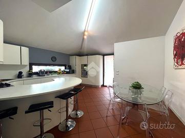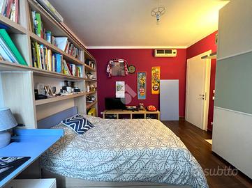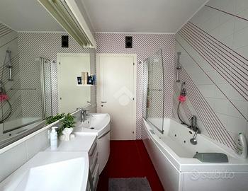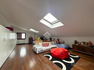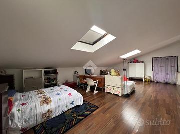 Salendo pochi gradini accediamo alla zona notte composta da due camere matrimoniali, da un bagno finestrato con vasca e da una zona padronale che comprende una camera matrimoniale e un bagno finestrato con doccia, tutto il reparto è servito da un ampio terrazzo e si completa con una quarta stanza ampia e mansardata di 50 mq.