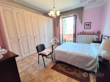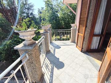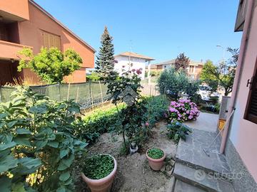 L'abitazione è in zona tranquilla e residenziale. Gli spazi interni sono ampi e luminosi. L'accesso alla villa è tramite un pratico balconcino. Il soggiorno è doppio e completo di balcone e la cucina abitabile ha la veranda che affaccia sul giardino. Il bagno su questo piano è finestrato e con la doccia. Le tre camere da letto al primo piano sono matrimoniali, due complete di balcone e una con terrazzino. Sempre al primo piano c'è un pratico ripostiglio e il secondo bagno, anch'esso finestrato e con la vasca.