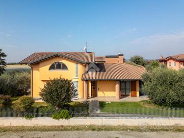 Villafranca di Verona - Caluri - inserita in contesto residenziale circondato dal verde, comoda al raggiungimento di Villafranca, di Dossobuono e delle principali arterie stradali, proponiamo in vendita elegante e recente villa singola edificata nel 2009 su lotto di 530,00 mq.