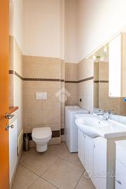 Proseguendo attraverso la zona giorno troviamo cucina abitabile di 18,80 mq studiata con interessanti arredamenti su misura e a completamento un bagno di servizio.
