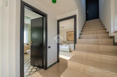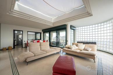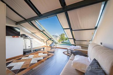 Al piano terra si apre un'ampia zona giorno luminosa e accogliente, impreziosita da grandi porte finestre che conducono alla loggia panoramica, luogo ideale per pranzi e momenti di relax all'aperto, godendo di una vista lago unica. La cucina, separata e abitabile, è completamente attrezzata e pensata per chi ama gli spazi funzionali e conviviali.