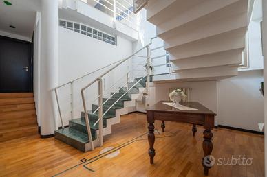 Al piano superiore trova spazio un'ampia autorimessa di circa 90 mq, che consente di ospitare più autovetture. Da qui si accede a una raffinata zona wellness con sauna e accesso diretto a una splendida terrazza/solarium, perfe