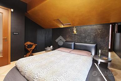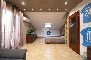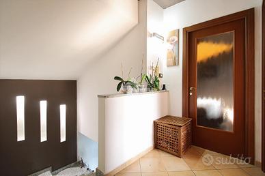 Al piano primo, accessibile da curata scala in muratura interna, si trova la camera da letto con accesso al balcone esposto a sud, il bagno con vasca e due ampi locali sottotetto (altezza minima 1,2 m, altezza massima 2,7 m), finemente rifiniti e utilizzabili per vari scopi con accesso a un balcone.