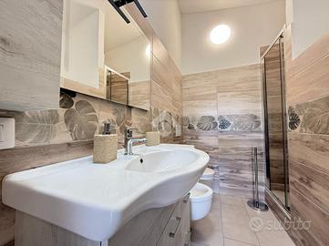 Villasimius: proponiamo in vendita all'interno di un residence curato, tranquillo e dotato di piscina condominiale, una splendida villetta terra-cielo perfettamente rifinita e pronta da vivere. All'ingresso troviamo un cortile privato, ideale per momenti di relax all'aperto, arricchito da una doccia esterna e da una veranda coperta completa di piano da lavoro in muratura, lavandino e comode nicchie sottostanti per riporre tutto il necessario. Da qui si accede direttamente alla zona giorno, un ampio open space luminoso con cucina moderna e completa di tutti gli elettrodomestici, impreziosita da una pratica isola centrale perfetta per cucinare e convivere. Salendo al piano primo, la zona notte accoglie una spaziosa e luminosa camera matrimoniale con veranda esterna coperta e chiusa, ideale come zona relax o studio, e una seconda camera doppia dalle linee accoglienti. Il piano si completa con un bagno finestrato, dotato di tutti i comfort e di un lucernario elettrico che garantisce luce naturale e aerazione. Al piano seminterrato troviamo un garage di proprietà, comodo e funzionale, che completa questa interessante soluzione abitativa. Contattaci per ulteriori informazioni e/o per fissare una visita!