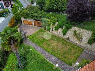 Il giardino terrazzato, curato nei minimi dettagli, abbraccia la casa regalando scorci spettacolari sul lago, sul castello e sulle colline, in un'atmosfera di pace e bellezza naturale.