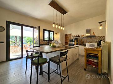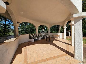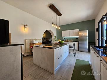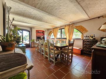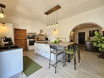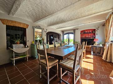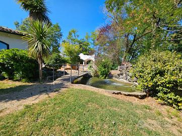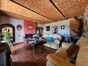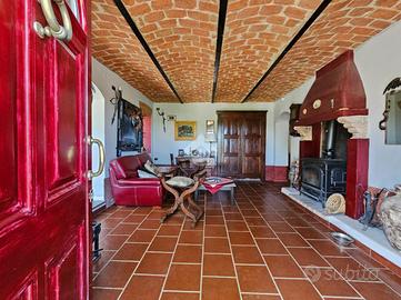 A Vinchio, nel cuore del Monferrato, proponiamo una prestigiosa proprietà immersa nella natura, ideale come residenza di lusso, casa vacanza o struttura ricettiva. Il fabbricato, ristrutturato recentemente, mantiene caratteristiche uniche e particolari ed è circondato da un ampio terreno ben curato, con piscina, cascate d'acqua, piccoli canali e spazi per attività all'aperto. Gli interni offrono finiture di pregio, con pavimenti in cotto e ceramica, soffitti con voltine e mattoni a vista, camini, bagni in marmo e ceramica, serramenti in legno e alluminio. L'impianto di riscaldamento è alimentato da una centrale termica a pellet, mentre il fotovoltaico da 12 KW provvede al fabbisogno energetico. La struttura dispone di molteplici ingressi separati per esigenze anche da bifamigliare. Compresi un ampio salone con finestre ad arco, un bar con accesso al prato e alla piscina, edifici in muratura per eventi, locali di servizio, spogliatoi e bagni pubblici. L'abitazione, disposta su due piani, ospita al piano terra un ingresso con stufa a legna, sala da pranzo con grande arco, soggiorno con affaccio sul giardino, bagno di servizio, cucina ristrutturata nel 2024, lavanderia e studio. Al piano superiore si trovano quattro camere matrimoniali, di cui una con cabina armadio, uno studio con ampia biblioteca, un bagno ristrutturato nel 2020 e un grande ripostiglio.