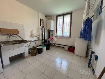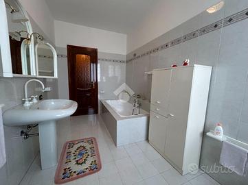 Al piano interrato, a cui si accede tramite scala interna, troviamo una grande taverna, un secondo bagno finestrato con la doccia, locale adibito a lavanderia e doppio box auto con doppia basculante.
