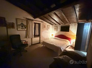 Salendo la scala interna ci troviamo al primo piano, dove è presente una zona living a vista con alti soffitti e travi a vista, adatto anche come studio, proseguendo sono presenti, tre camere da letto, di cui due camere sono complete di cabina armadio e bagno privato finestrato, uno studio con balcone, un altro bagno grande a servizio della zona notte e un ripostiglio.