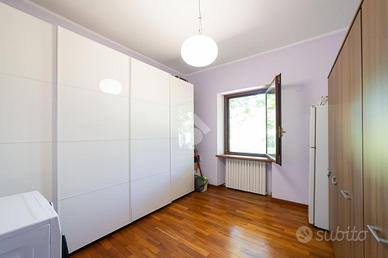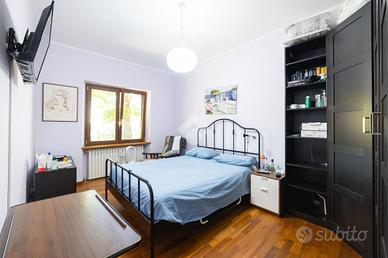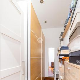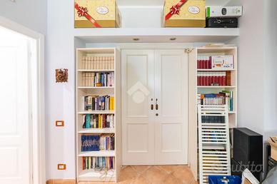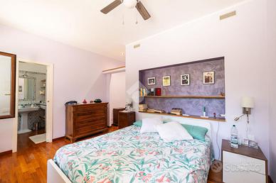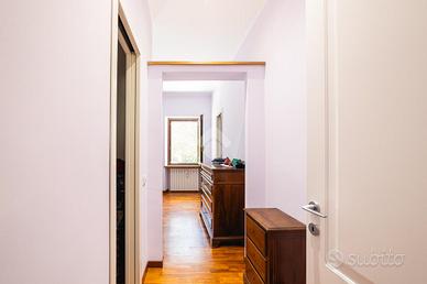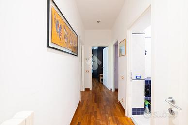 La zona notte è posta interamente a destra dall'ingresso ed è caratterizzata da tre camere da letto tutte rivestite in parquet, due bagni e una cabina armadio. La prima camera è di medie dimensioni mentre le altre due matrimoniali sono di generose dimensioni e una è dotata di bagno 'en suite'. Entrambi i servizi sono finestrati e con box doccia.