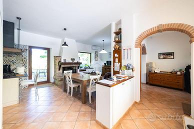 Risulta essere molto comoda poiché il corpo principale si sviluppa su un unico livello tutto su un piano di 140 mq. Al di sotto con un ingresso indipendente e separato troviamo un appartamento di 60 mq con portico esterno di 45 mq ideale come taverna, alloggio per ospiti o struttura ricettiva.