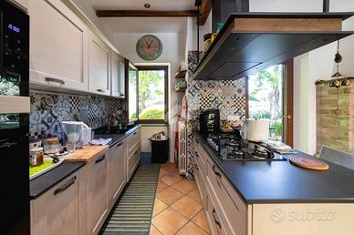 La dependance è raggiungibile da due punti e ha un suo ingresso indipendente. Il portico di 45 mq è il valore aggiunto di questa parte di villa ed è sfruttabile durante tutto l'anno.