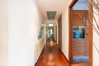La villa è caratterizzata da una metratura non convenzionale, ben 300 mq di superficie abitativa e 50 mq di taverna. In virtù delle sue generose dimensioni può facilmente essere divisa in due unità abitative per famiglie che vogliano vivere sotto lo stesso tetto ma con ingressi separati. Infatti la villa possiede un unico accesso principale che conduce il visitatore o verso il corpo centrale dell'immobile o salendo una scalinata verso la parte superiore che è speculare a quella inferiore.