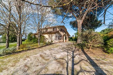 La proprietà si sviluppa su tre livelli ed è avvolta da un ampio terreno di circa 8.500 mq, completamente delimitato da siepi e recinzione, con due ingressi carrabili che garantiscono praticità e indipendenza.