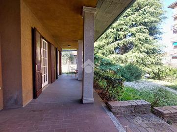 Villa singola posta a due passi dal centro paese, ideale per famiglie che ricercano la comodità delle scuole e dei negozi di prima necessità. La soluzione si presente immersa nel suo ampio giardino privato, il quale circonda tutti i suoi quattro lati. I locali sono disposti su un unico livello oltre ad una piano cantinato. Attraverso ad un porticato coperto si accede all'accogliente zona living che, oltre alla sua ampiezza, è impreziosita da un particolare camino in muratura e da ampie vetrate. La sua doppia esposizione ovest-est permette di avere un soggiorno molto luminoso. La cucina è spaziosa e funzionale con accesso ad un terrazzo coperto, ideale per pranzare e cenare all'aperto. Un piccolo disimpegno, accede alla zona notte composta da tre camere da letto. I servizi sono doppi ed entrambi finestrati. Una scala interna in muratura accede al piano cantinato, completamente rifinito e utilizzato come locali hobby, locale lavanderia . Questo piano è ottimo per famiglie a cui piace organizzare feste con amici e parenti. L'ampiezza del giardino privato, circa 830 mq, permette di istallare anche una piscina. Presente impianti d'irrigazione. Esternamente sono presenti anche due boxes. La consegna dell'immobile può essere accordata anche in tempi brevi.