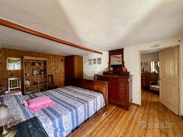 In frazione Oldrì di Viù, posta a 800 metri dalla piazza del mercato e a 500 metri dalla piscina VerticalBlù, proponiamo in vendita casa indipendente con giardino privato, recintato e prevalentemente pianeggiante di circa 400 mq. L'immobile si sviluppa su tre livelli abitativi, collegati tramite scala interna: il piano terreno è composto da un ampio soggiorno con camino a legna, dal primo bagno finestrato con doccia, da un ampio magazzino e dalla cucina abitabile; il piano primo presenta tre camere da letto matrimoniali, il secondo bagno finestrato e la "sala giochi" con camino a pellet canalizzato; il secondo piano infine comprende tre ulteriori camere da letto matrimoniali, il terzo bagno finestrato, un ripostiglio e la sala con camino a legna. Conclude la vendita il piano cantine seminterrato. La casa si presenta in buono stato, atta all'utilizzo prevalentemente estivo e durante le mezze stagioni; il riscaldamento è parziale (non presente in tutti gli ambienti) ed avviene mediante due camini a legna e ad un camino a pellet canalizzato, posti ciascuno su uno dei tre livelli abitativi in corrispondenza dei soggiorni; sono stati installati tuttavia dei radiatori elettrici nelle camere da letto e nei bagni; gli infissi risultano essere tutti in legno a vetro singolo; la copertura del tetto è in tegolato. La proprietà è raggiungibile con i mezzi, tramite strada comunale asfaltata, tuttavia non si ha la possibilità di posteggio a causa dell'assenza di zona adibita a parcheggio frontale. Risulta presente allaccio alla rete elettrica, all'acqua potabile e alla fognatura.