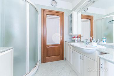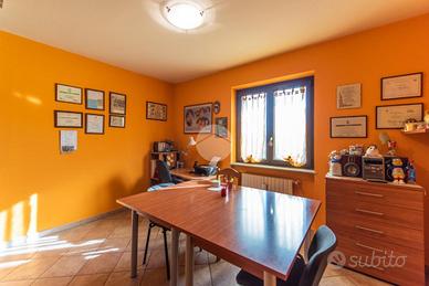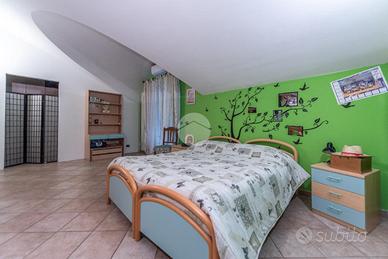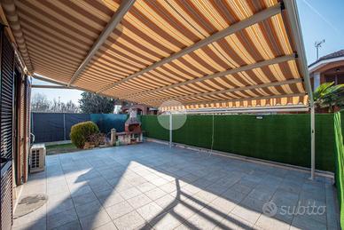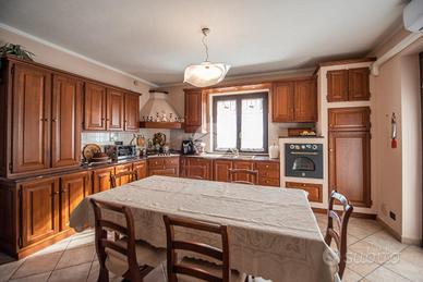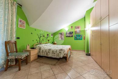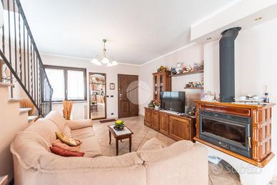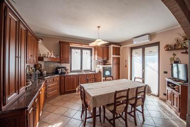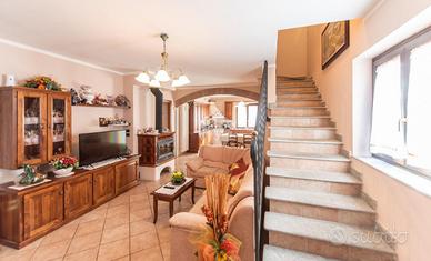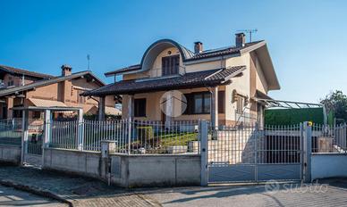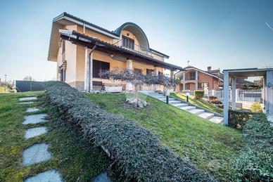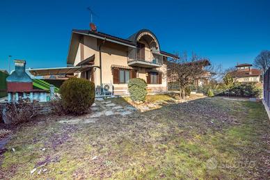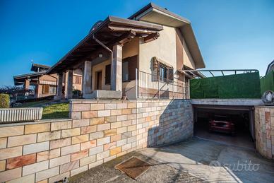 In zona residenziale, comoda al centro paese e a tutti i principali servizi, la villa è libera sui quattro lati ed è circondata da circa 350 mq di giardino. Dall'ingresso si accede all'ampio salone living, la cucina è abitabile ed ha sfogo diretto sul giardino privato e in parte terrazzato. Le camere da letto del piano sono due, entrambe matrimoniali. Il bagno è finestrato. Tramite scala interna si accede al piano superiore composto da altre due camere matrimoniali e dal bagno, finestrato e dotato di doccia e di un vano per la biancheria. Il piano seminterrato, raggiungibile tramite una comoda scala interna e formato da un'ampia zona open space, è completamente rifinito e adattabile secondo le soggettive esigenze. E presente, inoltre, un locale lavanderia munito di vasca. Il riscaldamento è autonomo e sezionato sui diversi piani abitativi, regolabile tramite la presenza di termostati. Sono inoltre presenti tre condizionatori che fungono anche da pompe di calore nella zona giorno del piano terra e nelle due camere matrimoniali al primo piano. Gli infissi sono in pvc e dotati di doppio vetro ed è presente l'antifurto perimetrale e volumetrico. Il box auto è ampio e piastrellato e al suo interno si trova l'impianto di caricamento per le auto elettriche. L'immobile è inoltre dotato di impianto fotovoltaico.