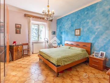 Il primo piano offre ulteriori ambienti ben distribuiti: tre camere da letto, di cui due matrimoniali e una singola, una cucina separata dal soggiorno e un secondo bagno.