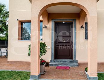 Prestigiosa Villa Singola con piscina all'interno del comune di Aci Bonaccorsi (CT). Classe Energetica A. La Villa pur godendo di una Privacy assoluta ha un'ottima posizione Centrale in via Calcara di Aci Bonaccorsi, inoltre dista a pochissimi minuti da uno dei più noti Centri Commerciali " Le Zagare" e a due passi dalla tangenziale dove si possono facilmente raggiungere diverse località come Catania, Messina, Palermo ecc.. . Ogni elemento di questa proprietà vi stupirà per le sue ottime rifiniture, sia interne che esterne, Gli ambienti presentano un equilibrio di grande armonia e donano a questo magnifico immobile una grazia e una bellezza unica. Lo spazio esterno oltre ad essere dotato di piante ornamentali ben curate dispone anche di una invidiabile piscina con impianto di ultima generazione dotata di impianto elettrico elettrolitica e inverter, impianto utile sia per riscaldare la temperatura dell'acqua e per monitorare il corretto funzionamento del sistema, sarà fantastico trascorrere in sicurezza e nella propria riservatezza, momenti di tranquillità e di svago in questa stupenda proprietà. La Villa si dispone su tre livelli, la superficie interna e di circa 261mq circa, mentre quella esterna e di circa 400 mq. Varcata la soglia di ingresso possiamo notare la particolarità degli ambienti e delle rifiniture ricercate, al fine di rendere gli ambienti unici e di grande bellezza. La pavimentazione del piano terra è rivestita da pavimenti gres porcellanato 90x90 marca " Marazzi" Tutti i piano della Villa sono caratterizzati da porte laccate bianche della marca Filomuro Garofoli. Il Piano Primo è rivestito con pavimentazione con parquet. La Villa è predisposta anche per due nuclei familiari. A completare questa strepitosa proprietà è un garage di circa 25 mq. codice rif. DR001. Per prenotare una visita contatta il oppure invia un messg. WhatsApp. Sarai ricontattato dal nostro consulente addetto alla vendita.