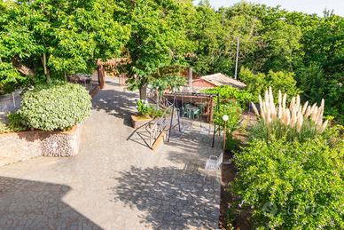 Inoltre uno stupendo e ampio portico terrazzato panoramicissimo con vista etna che si affaccia sul giardino