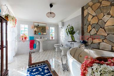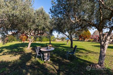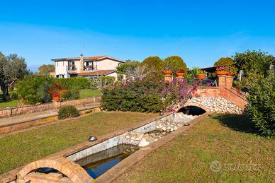 Tor San Lorenzo - Villa singola su lotto di 10.000 mq: ingresso, salone, sala pranzo, cucina, camera, cameretta e bagno con vasca al piano terra; disimpegno, tre camere matrimoniali, bagno con vasca idromassaggio e tre balconi al piano primo. L'immobile si trova a un chilometro e mezzo ca dai principali servizi, quali posta, supermercati e farmacia, a 500 metri dalla fermata Cotral linea F12664 , e a 2,5 km ca dal mare.