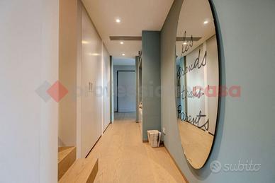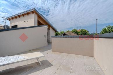 In una delle zone più ricercate e riservate di Arona, a breve distanza dal lago e da tutti i principali servizi, proponiamo una proprietà indipendente di assoluta esclusività, pensata per chi desidera comfort, innovazione e privacy in un contesto privilegiato. La residenza sorge su un lotto di circa 550 mq e si sviluppa su una superficie complessiva di circa 320 mq, distribuiti su tre livelli oltre a locali sottotetto e a un raffinato tetto pensile di 40 mq. L'assenza di edifici similari nelle immediate vicinanze ne esalta il carattere unico e riservato. Completata a metà 2022, la villa è stata realizzata con innovative tecnologie prefabbricate in acciaio e sistemi costruttivi a secco, soluzioni che garantiscono elevati standard qualitativi, eccellente isolamento e massimo comfort abitativo. La classificazione in Classe Energetica A4 (kWh/m² anno 7,42) testimonia un livello di efficienza tra i più alti disponibili sul mercato. Al piano primo si apre un'ampia e luminosa zona living dove soggiorno, sala da pranzo e cucina dialogano in un ambiente accogliente e contemporaneo. Un disimpegno conduce alla zona notte, composta da due camere di generose dimensioni e bagno. Il piano sottotetto, collegato da scala interna, ospita un terzo locale polifunzionale ideale come studio, area hobby o ulteriore camera, oltre a un ripostiglio, spazi accessori e un grande terrazzo che offre un piacevole sfogo esterno in totale privacy. Al piano terra trovano spazio una spaziosa taverna, i locali tecnici e un comodo box auto, completando una distribuzione razionale e funzionale. Il giardino, in parte a prato e in parte arricchito da essenze floreali e da un piccolo orto a bassa manutenzione, garantisce vivibilità e riservatezza. La proprietà è interamente delimitata da cancello carraio e pedonale. L'abitazione è concepita come una vera casa a impatto zero, dotata di: * impianto domotico * riscaldamento a pavimento in tutti gli ambienti * pompa di calore * imp