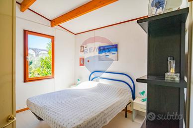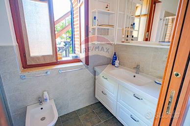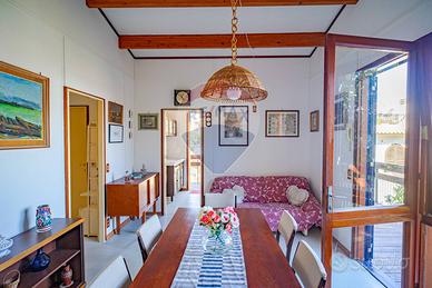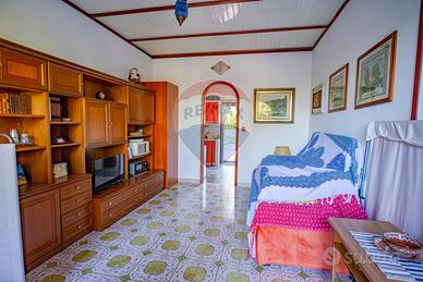 La villa si compone di due elevazioni. La struttura al piano terra, in muratura portante, comprende un vano adibito a soggiorno, una cucina ed un servizio; intorno al perimetro lo spazio aperto a ridosso delle mura è coperto e comprende un portico lato mare.