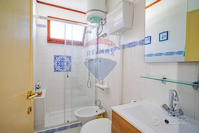 Il piano superiore è realizzato con una struttura in acciaio e legno, un design moderno dal linguaggio leggero; il volume comprende un soggiorno vista mare illuminato da una vetrata a giorno; due camere da letto, un bagno ed un ripostiglio.
