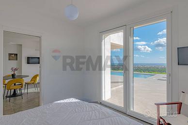 La villa ha una superficie di circa 163 mq ed è interamente sviluppata su un unico livello, garantendo comfort e funzionalità degli spazi. Gli ambienti interni sono ampi e luminosi e si articolano in due zone living, entrambe dotate di cucina moderna e con affaccio diretto sulla piscina, creando una perfetta continuità tra spazi interni ed esterni.