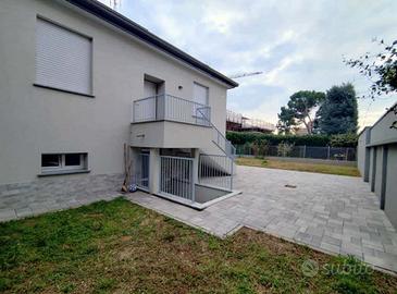 All'esterno, un ampio giardino privato circonda la villa: un angolo di pace dove rilassarsi, accogliere gli amici o godersi il sole in ogni stagione.