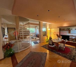 I mq interni sono circa 260 mentre il giardino che circonda completamente la proprietà sui 4 lati e di circa 250 mq con zona parcheggio , inoltre al primo piano troviamo ampi terrazzi da cui si può accedere sul terrazzo di copertura in cui troviamo la predisposizione di una vasca in muratura .