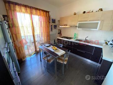 Piano rialzato con ingresso con ampio disimpegno, soggiorno, cucina abitabile 2 vani letto, due bagni e ripostiglio;
