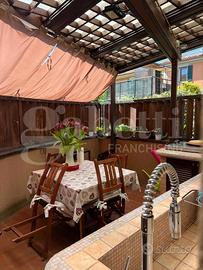 In laterale silenziosa e posizione interna, immersa nel verde, vendesi bellissima villetta comoda a tutti i servizi silenziosa e luminosa disposta su 3 livelli. Piano Terra : ingresso, ampio salone con accesso a spazio esterno tutto verandato di mq. 40, grande cucina abitabile con accesso a spazio esterno, in quest ' area troviamo bellissima cucina esterna cucina esterna e barbecue, al primo piano due camere da letto matrimoniali e un bagno, al piano superiore una grande camera mansardata con bagno e terrazzo di mq. 30. Piano seminterrato ampia taverna con camino funzionante, bagno con accesso al garage con 1 posto auto. Villetta in ottimo stato, indipendenza comodità e tranquillità rendono questa abitazione perfetta per un nucleo familiare. Per info e appuntamenti chiamare