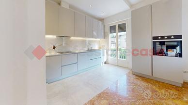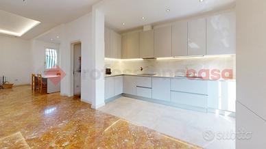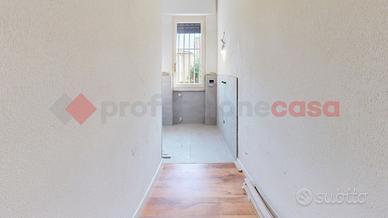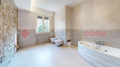 L'ingresso principale conduce a un accogliente loggiato. Il cuore della casa è l'ampia cucina/soggiorno open space con camino. I pavimenti al piano terra sono in pregiato marmo di Venezia rosa, mentre la zona notte, presenta elegante parquet. Le camere includono una singola con balcone e due matrimoniali. I bagni sono rifiniti con materiali di pregio: uno con vasca "Sail de Bain" e marmo dell'India, l'altro con marmo di Carrara. È presente anche una zona lavanderia da terminare.