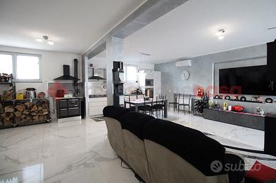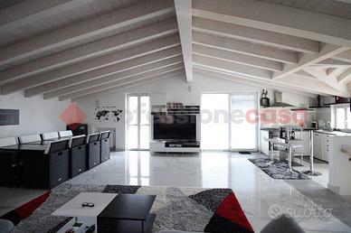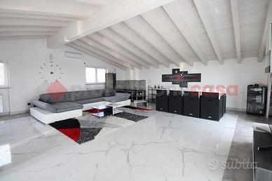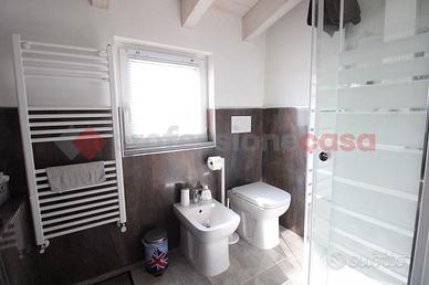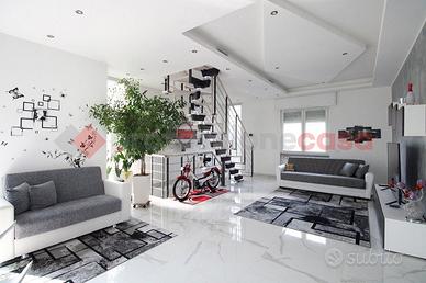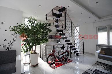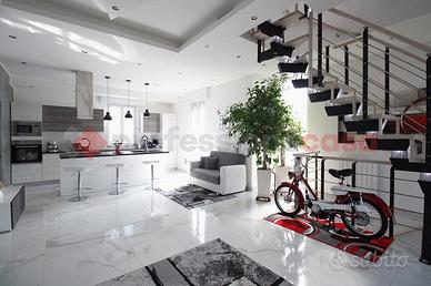 Brembate, villa singola completamente ristrutturata con giardino privato e terrazzo di 50mq. La soluzione si sviluppa su tre livelli: - piano terra (100mq): ampio locale con cucina a vista, disimpegno, bagno e locale lavanderia; - piano primo (100mq): appartamento con luminoso open space con cucina a vista con moderna isola, disimpegno zona notte, due camere da letto matrimoniali (una con balcone) e bagno. - piano sottotetto (70mq): ambiente unico con cucina a vista, bagno e terrazzo di 50mq. Tutti i livelli sono collegati fra loro da scala interna. La ristrutturazione ha interessato l'intera struttura e la totalità degli impianti, compreso l'innalzamento dell'ultimo piano, con rifacimento totale del tetto e la posa di suggestive travi di legno sbiancate che rendono l'ambiente ancora più luminoso. L'impianto di riscaldamento è unico con termostato per ogni piano, permettendo la gestione indipendente di ogni livello. Aria condizionata caldo/freddo, infissi PVC doppio vetro con tapparelle motorizzate, allarme, videocitofono per ogni piano. Giardino privato di 250mq con piscina. Classe Energetica "C" - ipe 127,04