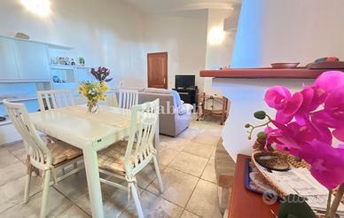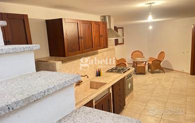 Annesso locale cantina arredata al piano interrato collegato da una scala interna, composto da soggiorno con angolo cottura in pietra sarda e camino, due camere e un bagno con box doccia.