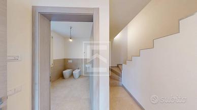 Salendo al primo piano si accede alla zona notte, dove si sviluppano ambienti ben proporzionati e illuminati da grandi aperture. Due camere da letto matrimoniali, ognuna col suo bagno finestrato. Una di queste dispone anche di area guardaroba con spazio per cabina armadio. Questo piano è impreziosito da un terrazzo. Una seconda scala porta all'esclusivo solarium panoramico sul tetto, pensato come spazio privato e rilassante da cui godere di viste aperte e momenti di tranquillità allaria aperta.