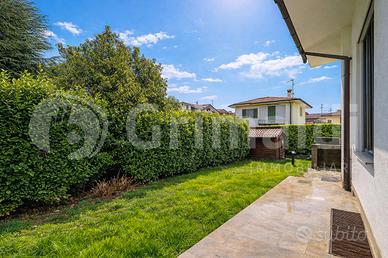 Il giardino è disposto su quattro lati e finemente piantumato e gode della presenza di una bella veranda per piacevoli serate all'aperto.