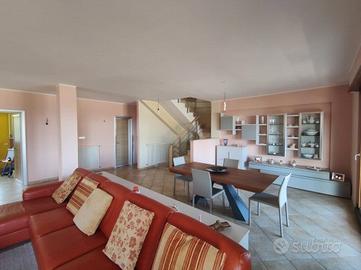 nel seminterrato ci sono due cantine, locale tecnico e grande garage; al primo piano troviamo una bellissima ed ampia zona living con camino e terrazzo, studio, bagno, dispensa ed una bellissima cucina con camino e due terrazzi; salendo al secondo piano, tramite una bellissima scala in marmo su misura, si apre la zona notte, tutta in parquet, nella quale ci accolgono tre camere da letto di cui una con bagno privato, terrazzi con affaccio su un panorama mozzafiato ed altro bagno con vasca idromassaggio; nell'ultimo livello troviamo un comodo vano lavanderia con altro terrazzino.