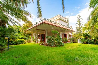 Rif: 32311103-37 Questa splendida villa singola si trova nella tranquilla cittadina di Carlentini (Contrada Balate di Zacco), situata sulla costa orientale della Sicilia, a circa 30 km da Catania e 50 da Siracusa. Costruita nel 1982, l'edificio si distingue per la sua elegante architettura, con un totale di circa 470 metri quadri di superficie su tre elevazioni. Di questi, circa 450 metri quadri sono calpestabili e si estendono su tre livelli, offrendo ampi spazi abitativi e una distribuzione interna le. L'ingresso principale conduce in un luminoso, accogliente e grande salone, dotato di grandi finestre e porte che si affacciano sul giardino circostante, creando un'atmosfera rilassante e piacevole. In questo piano è presente la cucina, la sala da pranzo, uno studio, bagno e una lavanderia. Al primo primo piano vi sono cinque camere da letto, tre bagni e vari terrazzi. Il piano seminterrato è composto da un grandissimo ambiente, due bagni, lavanderia, due camere ed il garage. L'immobile dispone di riscaldamento e climatizzatori. Il curatissimo giardino, che misura circa 1000 metri quadri, circonda la villa, offrendo un'oasi di pace e tranquillità, lontano dal caos della città. Grazie ed i vari terrazzi, al giardino ed al loggiato, è possibile rilassarsi e godere del clima mediterraneo, tra varie essenze botaniche, una splendida vista sulle colline circostanti, il lago di Lentini e l'Etna. Infine, per garantire la massima comodità, la villa dispone di un garage e uno spazio esterno per il parcheggio di ulteriori veicoli. L'immobile è frazionabile. Per ogni altra informazione non esitate a contattarci.