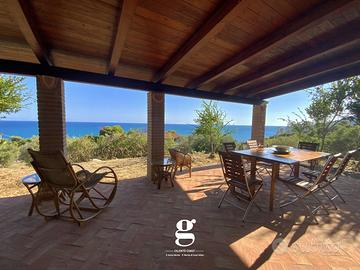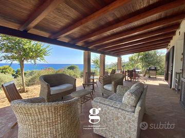 Villa di pregio ad uso abitativo con 5 locali e 2 servizi, situata in posizione dominante nel comune di Casal Velino (SA) a pochi passi da Pioppi. Con una superficie di 125 mq catastali, questa proprietà vanta una vista mozzafiato sul mare cristallino e sul suggestivo paesaggio del Cilento. La villa si sviluppa su due livelli ed è composta da una zona living comoda e funzionale con diverse aperture verso il mare, due camere da letto matrimoniali e doppi servizi. Dalla zona giorno è possibile accedere ad un portico esclusivo, ideale per trascorrere momenti di puro relax accarezzati dalla brezza marina. Gli spazi abitativi sono valorizzati con cura ed esaltati dalla bellezza bucolica della natura circostante. Le finiture di pregio e i materiali di alta qualità, conferiscono all' immobile un fascino prezioso. All'esterno la villa è circondata da un giardino di 4487 mq con alberi di ulivo, alberi da frutto e piante ornamentali. Una vera oasi di pace e bellezza, perfetta per chi cerca un rifugio esclusivo lontano dal caos cittadino, immerso nella natura incontaminata, dove il tempo sembra quasi fermarsi. Contattaci per fissare un appuntamento.