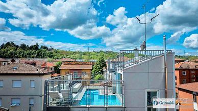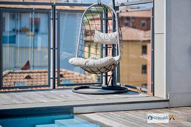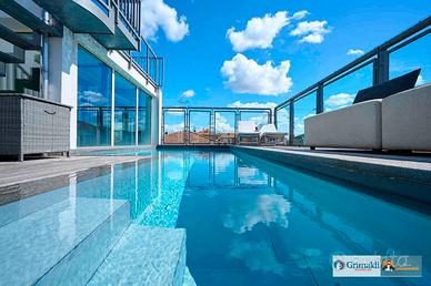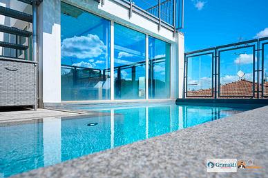 Salendo ancora all'ultimo livello troviamo una magnifica piscina riscaldata con solarium vista san Luca