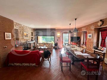 Al piano terra si sviluppa la zona giorno, ampia e luminosa, composta da un grande soggiorno con area relax e zona conversazione, collegato a una spaziosa sala da pranzo e ad una cucina abitabile funzionale e ben organizzata. Sullo stesso livello sono presenti anche un bagno di servizio ed ambienti di disimpegno che rendono la distribuzione degli spazi fluida e pratica. L'accesso diretto verso l'esterno conduce ad un porticato e alle aree pavimentate che si affacciano sull'ampio giardino privato, arricchito da piante e spazi verdi, perfetto per momenti di relax all'aperto o per vivere la casa in tutte le stagioni.
