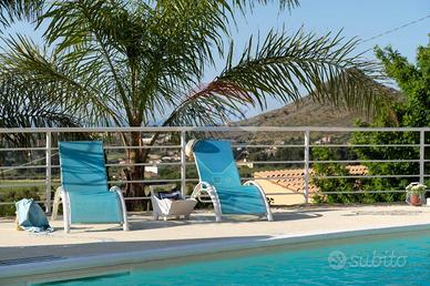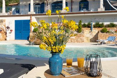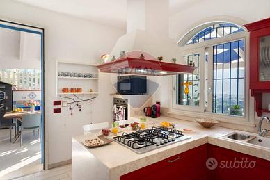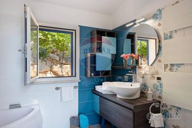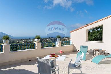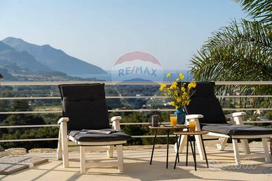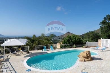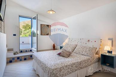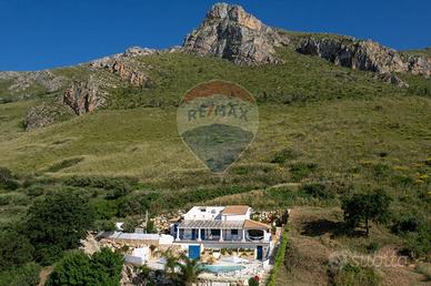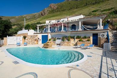 CASTELLAMMARE DEL GOLFO (TP)_ Villa indipendente situata sul promontorio di Scopello con straordinaria vista sul Golfo di Castellammare in ottimo stato a seguito dei lavori di ristrutturazione eseguiti iniziati nel 2012 e ultimati nel 2017 composta al piano terra da ampio living con vetrate che conferiscono luminosità e spazio, una cucina con penisola attrezzata di tutti gli elettrodomestici, un antibagno con lavanderia e bagno con doccia, ed una camera matrimoniale leggermente rialzata rispetto al livello del living. Al piano superiore si accede tramite una scala decorata in maiolica, dove si trova una seconda camera matrimoniale con terrazzo, un soppalco con scrivania, un bagno con doccia e vasca, una terza camera quadrupla con spogliatoio e accesso ad un ulteriore ampio terrazzo. La casa è dotata di impianto filodiffusione e climatizzazione nelle camere da letto e nel soggiorno. All'esterno, sono stati predisposti spazi esterni per ogni tipologia di attività, incluse una veranda con vista mare dotata di una cucina all'aperto completa di barbecue, forno a legna in muratura, forno a legna moderno, e un grande tavolo. La proprietà dispone inoltre di un ampio parcheggio interno per 5 posti auto. la piscina è situata su un livello inferiore rispetto alla villa con accesso mediante scala in pietra naturale. Ha una forma irregolare con una superficie totale di circa 75 mq con profondità costante di 1,40 m. Lingresso in acqua avviene tramite una comoda scala romana, dotata di una piacevole cascata e depurata a sale. Il bordo della piscina è antiscivolo e circondato da una pavimentazione in pietra, mosaici e resina mentre la vasca è rivestita in PVC ed è dotata di illuminazione interna. Larea prendisole è arredata con lettini e completata da una doccia esterna con acqua calda e fredda e frigo bar.