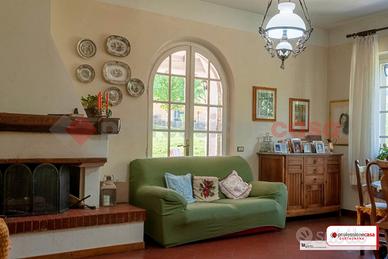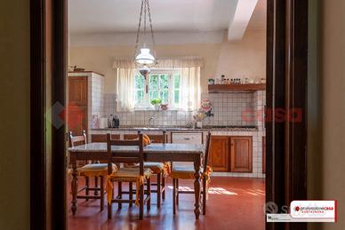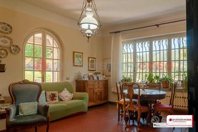 COD. UG247MD - VILLA S.CARLO Prestigiosa Villa con vista magnifica sulle montagne della Garfagnana. Posta in posizione collinare circondata da un parco privato di circa 3500 mq questa magnifica proprietà di charme mette assieme esclusività, privacy ma senza rinunciare alla vicinanza a tutti i servizi. La villa si sviluppa su tre livelli offrendo una superficie complessiva di 670 mq. Entrando dalla porta principale si percepiscono fin da subito gli elementi predominanti che caratterizzano tutta la proprietà, l'Eleganza e i grandi spazi. Al Piano terra troviamo un maestoso ingresso sul quale si affacciano le porte dello studio privato, del doppio salone con camino in pietra e terrazza panoramica, il corridoio che porta al tinello dove troviamo una grande cucina in muratura con dispensa ripostiglio e tavolo da pranzo per il quotidiano dalla cucina si può uscire sulla veranda esterna coperta, perfetta da sfruttare in buona parte dell'anno per godere dell'esterno senza rinunciare alla comodità, sempre a questo piano sono presenti due bagni. Salendo l'elegante scale in legno si accede al piano primo composto da 5 camere e 2 bagni e terrazza panoramica. Al piano seminterrato si può accedere sia dall'esterno che dall'interno attraverso una scala di collegamento con il piano terra, qui troviamo una grande taverna caratterizzata da un sapore più rustico, garage e centrale termica. Il sistema di riscaldamento è del tipo tradizionale a radiatori alimentati da una caldaia a Gasolio con serbatoio esterno. Una proprietà adatta a chi cerca grandi spazi, una discreta privacy senza rinunciare alla comodità dei servizi, ma soprattutto a chi voglia godere di tramonti mozzafiato con lo sfondo della valle della Garfagnana.