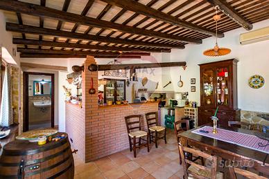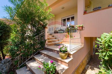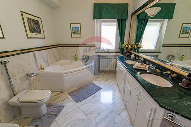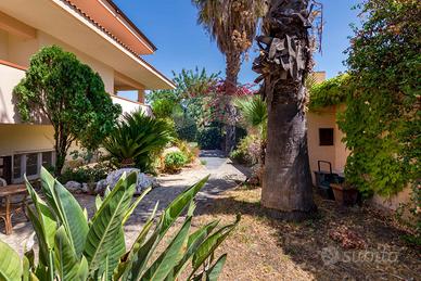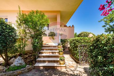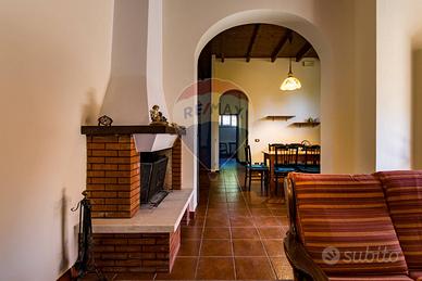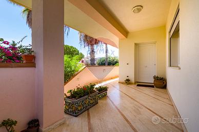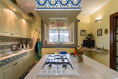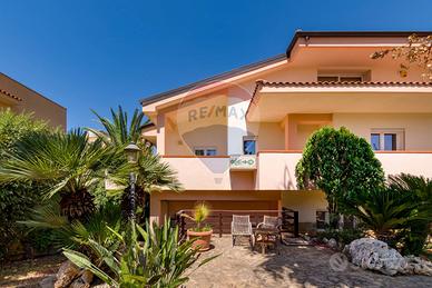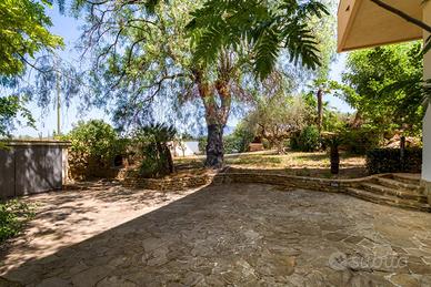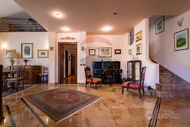La villa è costituita da un ampio salone , con pavimento composto da diversi marmi pregiati, con camino centrale, l' ambiente è collegato con scale a vista ad un ampio soppalco in parquet di iroko arredato con libreria in legno di rosa, vi è possibilità inoltre di posizionare un tavolo da biliardo . La zona notte , sempre in parquet di iroko , è costituita da due stanze da letto con balconi e due bagni( uno di rappresentanza è rivestito da un mosaico di diversi marmi impreziosita da ampia specchiera) . La cucine , rivestita da piastrelline dipinte a mano , da artigiani di Caltagirone, riproducono un pavimento siciliano del 600. Al piano secondo si trovano ancora altre tre stanze da letto e altri due bagni . I marmi, le porte e le soluzioni di arredo sono originali in quanto curati da un professionista di arredo dinterni. E' stata costruita da un unico proprietario circa 25 anni fa e nel 2022 ha usufruito di unintervento di riqualificazione energetica ( ecobonus 110%) con sostituzione di nuovi infissi a tenuta termica ed acustica, con due impianti di fotovoltaico di 6 kw ciascuno e due colonnine per ricarica di macchine elettriche. Tutti gli ambienti sono riscaldati con termosifoni alimentati da caldaie a basso consumo e da split per laria condizionata. La Villa è circondata da un giardino di 1600 mq , con splendide palme , ulivi , castagni, arance, limoni e numerosi alberi ornamentali. Infine, a completamento di questa proprietà, cè una grande piscina di 12x6 metri, rivestita di mattonelline di mosaico verde e azzurro, con zona fitness coperto di 50 mq e con dependance...